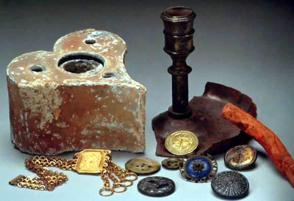 ![]() Encrier, chaîne, bougeoir, boutopns, cire à cacheter |