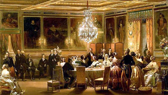 LA FRANCE SOUS LOUIS-PHILIPPE C'est sous le règne de ce Roi bourgeois et avec son SOUTIEN ACTIF que s'épanouit le Romantisme, que l'Industrie, le Commerce et les Transports (routes, chemins de fer, voies navigables, mers) commencèrent leur grande évolution (bien qu'en retard sur l'Angleterre), que l'Instruction se développa et que le Catholicisme se réforma. En particulier c'est Guizot qui en 1833 fit voter une Loi obligeant chaque Commune à posséder une Ecole primaire où tous les enfants pouvaient être admis gratuitement. Le Roi protège les Arts et les Artistes (même ceux qui le critiquent). C'est lui qui, sur ses fonds personnels, sauvera le Château de Versailles en le dédiant "à toutes les gloires de la France". Malgré certains progrès et créations (comices agricoles, école d'agronomie, ...) l'Agriculture reste toujours tributaires des conditions atmosphériques et maladies d'où disettes amenant des émeutes. Sur le plan de la Politique extérieure Louis-Philippe est très pacifiste. Il est amené à parachever la conquête de l'Algérie commencée sous Charles X, mais se réconcilie avec l'Angleterre, tout d'abord en refusant la couronne belge pour un de ses fils (c'est Louise, sa fille, qui épouse Léopold le nouveau Roi des Belges) puis en invitant en France la Reine Victoria (qui lui rendra la politesse) en établissant "l'Entente cordiale" entre les 2 pays. |