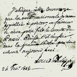 ![]() Louis-Philippe meurt le 26 Août 1850. La Reine Marie-Amélie lui survivra jusqu'en 1866. En 1876 leurs dépouilles seront ensevelies dans la nécropole royale de la Chapelle de Dreux qu'il avait fait bâtir en 1816. |