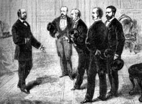 ![]() Entrevue entre les princes d'Orléans et le Comte de Chambord, en 1873 |