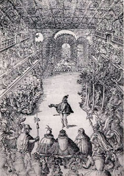 Le Ballet de Cour Il prend forme à la fin du Moyen-Age et au début de la Renaissance, en Italie. En France les premiers véritables ballets eurent lieu sous Charles IX et Henri III, après 1570, tel le "Ballet comique de la Reine" (1581) qui doit le mot comique à l'alliance de la danse avec la comédie. Il va aussi se développer en Angleterre. Aux pastorales mythologiques vont succéder des récits chevaleresques mis en musique et en danses. La Mythologie reprendra le dessus au XVIIème siècle avec Louis XIV, excellent danseur, qui incarnera souvent Apollon dans divers ballets . (Il y prendra son Nom de "Roi Soleil") Les danseurs sont essentiellement des personnages de la Cour puis, les chorégraphies se compliquant, apparaissent des danseurs professionnels si bien que le Roi fonde en 1661, l'Académie Royale de Musique et de Danse (base de notre actuel "Opéra de Paris"). |