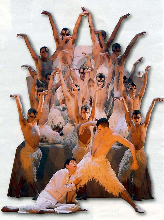 En Allemagne c'est Pina Bausch qui révolutionne la danse en la dramatisant et théâtralisant, en renforçant le rôle des costumes, accessoires et décors et où les gestes des danseurs, parfois spontanés, s'éloignent de plus en plus de la danse dite classique... ce qui lui vaut nombre de détracteurs. En Grande-Bretagne le renouveau se fait sentir comme en France par un "néo-classicisme" mené par Ninette De Valois, Frederick Ashton (magnifiquement interprété par Margot Fonteyn) et Antony Tudor qui quittera ensuite la Grande-Bretagne pour les Etats-Unis où il trouvera Jérôme Robbins et George Balanchine lequel allie l'âme de la Russie à l'esprit américain. ![]() "The swan lake", version hommes par Mattew Bourne du "Lac des cygnes" En URSS, de grands interprètes, tels Vladimir Vassiliev, Natalia Makarova, Maïa Plisseskaïa, Rudolf Noureev, Michaïl Barichnikov ... qui, coincés derrière "le rideau de fer" dansent au Bolchoï et au Kirov de magnifiques ballets (Le lac des cygnes, Giselle,...) sans renouvellement, ne souhaitent qu'une chose"passer à l'ouest" afin de pouvoir enfin exprimer tout leur Art... ce qu'ils feront pour beaucoup. *** Depuis les années 60 un renouvellement s'effectue dans le monde entier de la Danse. Avec plus ou moins de bonheur de jeunes Compagnies s'essaient à la "danse contemporaine". Trop complexe et trop technique pour notre propos nous préférons ne pas l'évoquer afin de ne pas risquer le dithyrambe... ou la caricature ! Cette "petite Histoire de la Danse et du Ballet" est forcément incomplète. De nombreux ouvrages sont consacrés à ce sujet ; nous ne pouvons pas tous les nommer. Parmi les plus complets , simples et accessibles à tous citons : La Danse ; collection "Découvertes Gallimard", n°297 et n°332 *** (image de fond : danseuses, de Degas) |