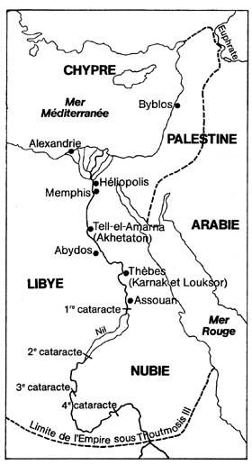 Lorsque ce pharaon arrive au pouvoir, il y a déjà quelque 1600 ans que l'Egypte a été unifiée et près de 200 ans depuis le début du Nouvel Empire (vers 1550 avant J-C) qui doit son nom à AMOSIS, vainqueur des Hyksôs (population d'origine sémitique qui avait conquis l'Egypte 100 ans auparavant) qu'il chasse définitivement, des Nubiens qui tentaient régulièrement d'envahir le sud, et des rebelles intérieurs à l'Egypte même.