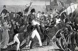 ![]() Débarquement à golfe Juan ; c'est le début du "Vol de l'Aigle" En apprenant cette nouvelle Louis XVIII ne s'alarme pas, pensant que cette équipée folle se terminerait très vite... comme lui assuraient ses généraux, anciens de Napoléon, tels Soult, Masséna, Ney, ... |