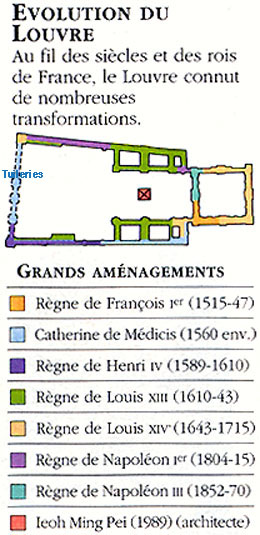 De la Renaissance à notre époque : ![]() C'est à la fin du XX°siècle que le "grand dessein" voulu par Napoléon III pour le Louvre est réalisé avec la création du "Grand Louvre" qui fait de ce palais l'un des plus grands Musées du monde. |